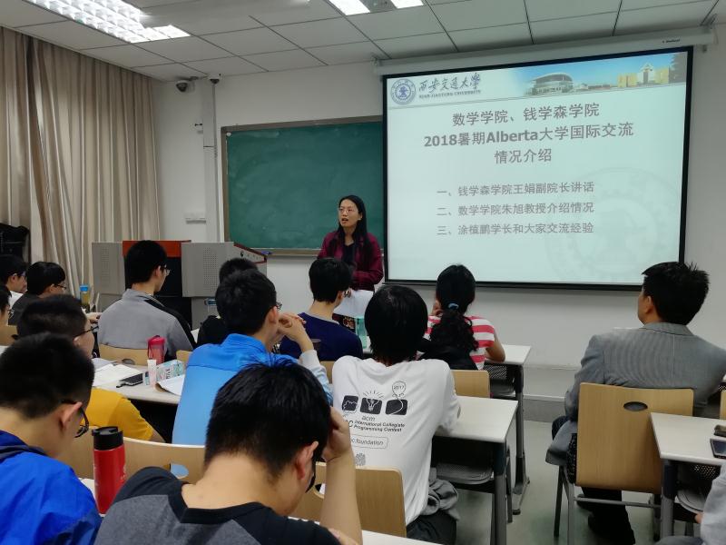 首先,beat365正版唯一官网副院长王娟代表beat365正版唯一官网讲话。她指出,根据2018年beat365正版唯一官网学生国际交流工作计划安排,2016级、2017级理科试验班学生将分别于2018年春季、暑期、秋季前往国外进行为期6周-5个月的学习和科研训练。试验班学生应该充分利用出国交流的平台与良机,增强使命责任,激发学术志趣,树立长远目标,并以著名物理学家理查德·费曼传记中的语录寄语大家,努力养成独创精神和自由探索精神,体验思辨的快乐,追求人生的新高度。随后,朱旭教授就加拿大阿尔伯塔大学暑期交流项目的基本情况及该项目的阶段性成果、交流期间外方课程设置与要求等进行了介绍,鼓励大家与导师积极互动,充分展示自己的个人能力,为今后进入国际一流大学继续深造打好基础。此外,朱旭教授强调,试验班学生代表着学校的形象,要始终秉持正确的政治意识、集体荣誉第一的团队意识,要严格遵守相关法律法规,注意日常生活安全。