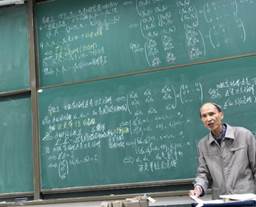丘爷爷非常注重不断创新教学内容和方法。高等代数和解析几何这门课程他已经讲了太多次,也烂熟于心,其实完全不用准备讲义就可以讲课,但在每学期上课前,他都要详细地查找最新资料,重新编写讲稿。他说:“尽管高等代数课和线性代数课我上了十几遍,可每次我都认真备课,因为每年都有新的内容要补充,我要求自己每一年都比上一年讲得好。”在数十年的教学生涯中,他总是不断思考,不断改进。每一次高等代数的大课间,都能发现丘爷爷坐在最后一排,一边喝着水,一边思考着自己黑板上的板书内容。