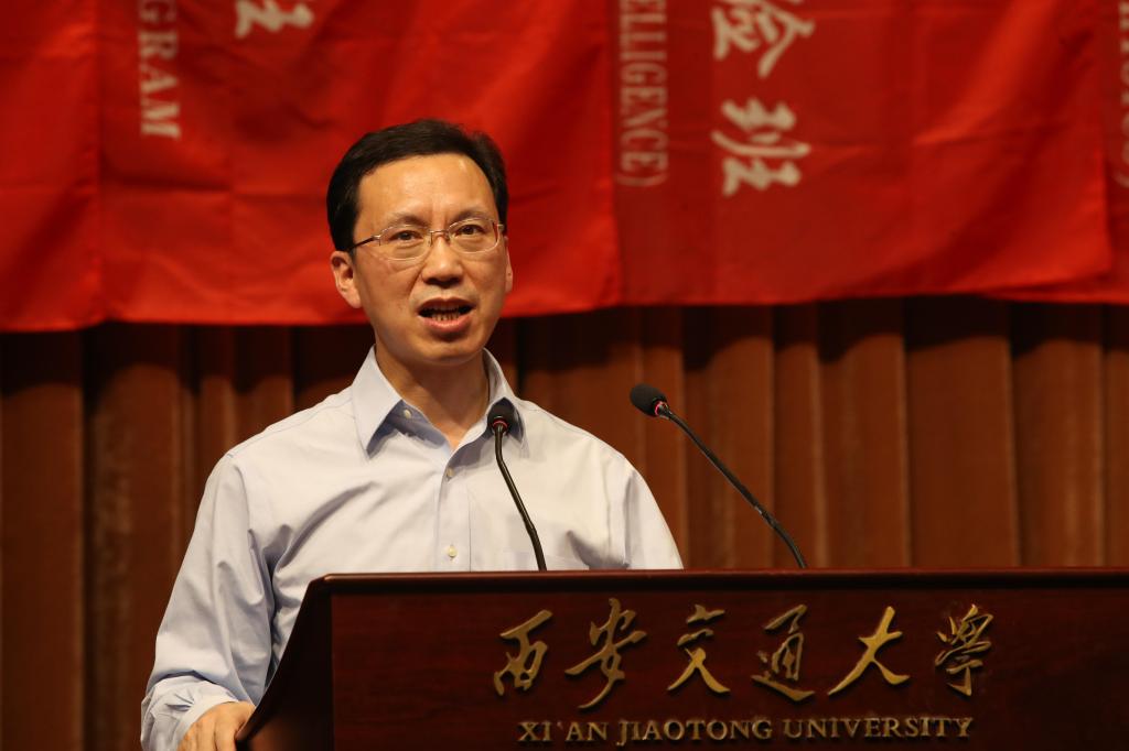 郑南宁院士在致辞中指出,教师的本职工作就是站在三尺讲台教书育人,应该多与学生交流,拉近师生之间的距离。他希望,同学们在交大的大家庭中相互关爱,共同进步,在未来的大学学习和生活中,努力克服遇到的各种各样的困惑,能够勇敢的坚持,因为成功属于那些贵在坚持的人。此外,还谈到了人工智能班成立的背景、意义,并对该班的发展提出了要求和期望。