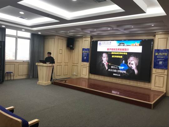 在开班仪式上,王娟副院长介绍了西安交通大学和beat365正版唯一官网在拔尖创新人才培养上做出的探索及取得的成绩,并从整体上对英才计划的背景、实施情况、学员发展等做了介绍,王娟副院长希望同学们在未来的一年里能快乐学习,有所收获。随后,“英才计划”物理专业导师,理学院院长高宏教授为同学们做报告,深入浅出的讲解了量子信息及其发展状况,同时对如何引导中学生进行科研训练做了系统的讲述。 讲座之后,数学、量子光学、材料科学与工程三个团队的导师分别与同学们座谈,对今后的学习和科研训练做了初步规划。