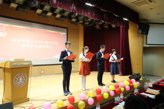 2019年6月28日9:15,西安交通大学南开中学2018级少年预科班师生及家长代表齐聚翔宇楼报告厅,共同参加少年预科班结业仪式。