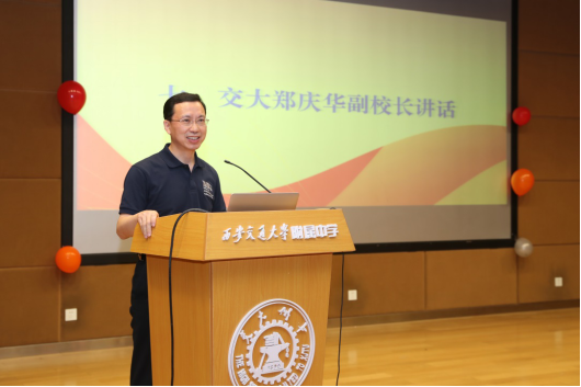 西安交通大学郑庆华副校长发表了热情洋溢的讲话。郑副校长肯定了附中这些年来在培养少年班工作上所做的努力,并形象地以物理学中力的三要素为例,语重心长地指出:力对物体的作用效果取决于力的大小、方向与作用点,一个有大格局的选择也是这样:大小,代表知识的广度、厚度;方向,代表前进的道理,道路决定命运;作用点的位置选择也很重要,在正确的时间里做正确的事情,作用点就是正确的。一个人如何有大格局呢?第一,做人要以爱国主义为核心,爱国要有力量,家长和学校要传播正能量,与国家、与民族同频共振;第二,做事不能有投机心理,投机也许会得意一时,但注定不能长久,家长要做孩子正能量的传播者、示范者和引导者。郑副校长的讲话发人深思,催人奋进!