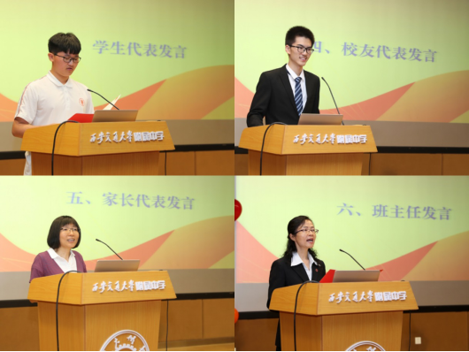 少年班的学长也来到会场见证2018级同学的成长,其中2017年化学竞赛金奖获得者费立涵代表优秀校友发言,他首先感谢附中的培养,之后重点结合自己的经历,告诉学弟学妹们,进入大学后,一要多获取信息,多增加经历;二要善于交流,主动与世界互动;三要永远热情和乐观。