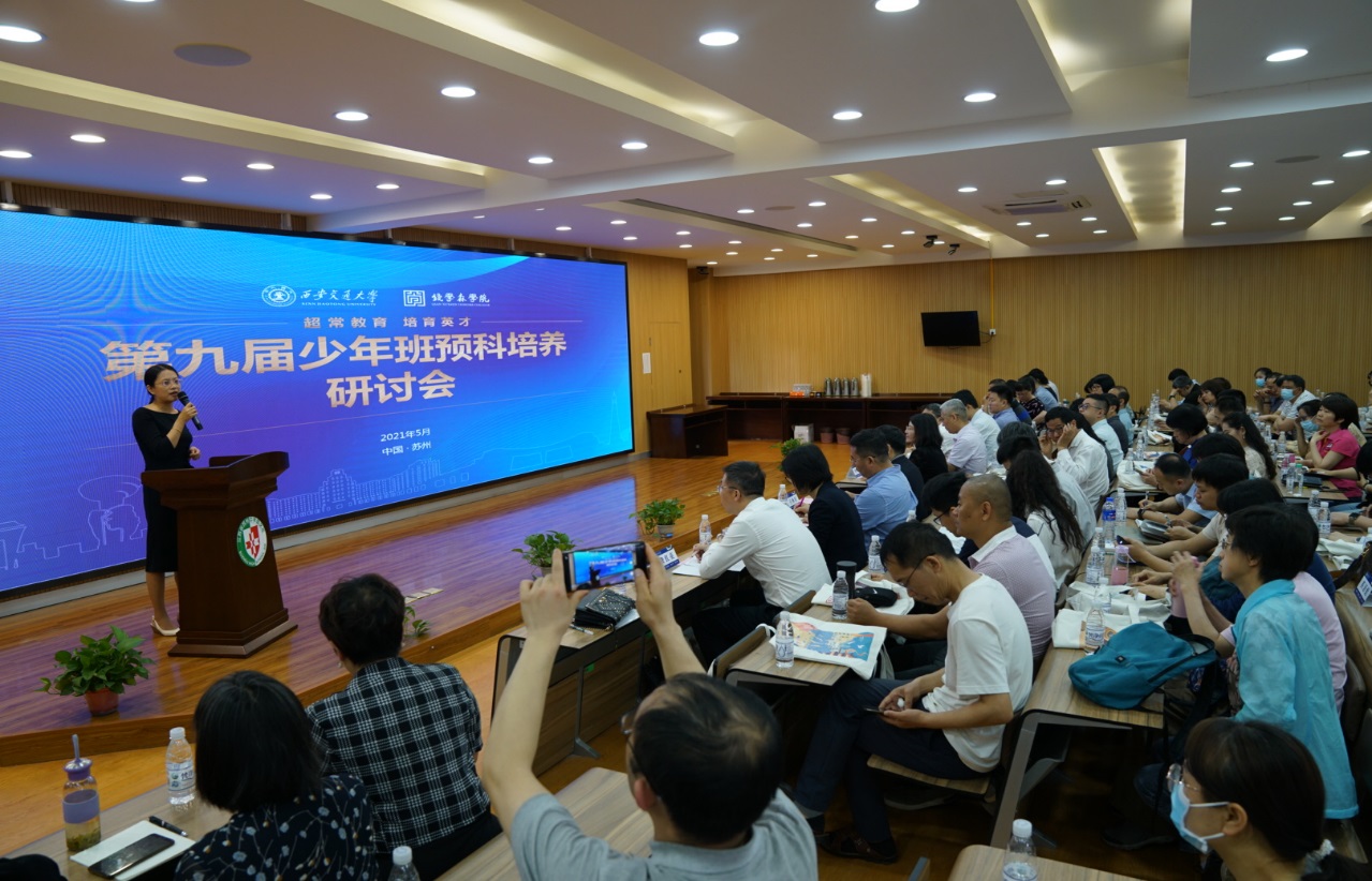 5月28日,西安交通大学第九届少年班预科培养研讨会暨首届家校论坛在苏州中学园区校举行。参与少年班预科一、二年级教学与管理的西安交大、交大附中、苏州中学、南开中学、杭州高级中学的一线教师以及预科一年级学生家长,共计130余人参与此次研讨。西交利物浦大学党委书记、副校长钞秋玲,西安交大本科生院副院长、招生办主任、教务处处长王秋旺,西安交大beat365正版唯一官网常务副院长杨森,交大附中校长訾艳阳,苏州中学校长卫新、副校长胡慧敏,南开中学副校长王文昌,杭州高级中学副校长费红亮,苏州研究院副院长王超锋、苏州巨杉智库总经理尹英杰出席会议。西安交大beat365正版唯一官网副院长王娟主持会议。