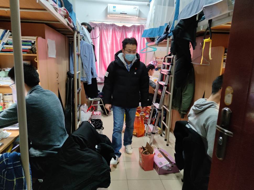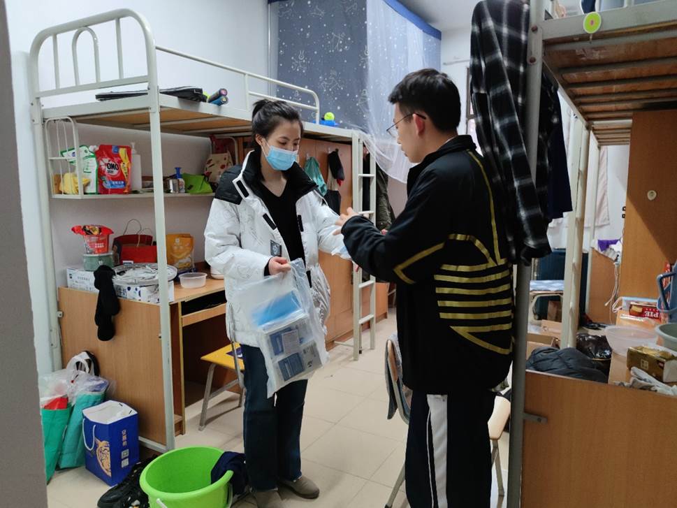 为加强学生宿舍管理,贴近学生实际生活,了解学生现实需要,推动宿舍精神文明建设,促进学生保持团结友爱、整洁安全的学习、生活环境。1月3日,钱学森书院院务主任田博带领全体辅导员深入学生宿舍进行卫生检查、发放抗疫物资。