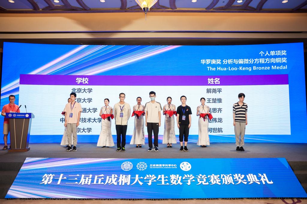 个人单项赛分为几何与拓扑方向,概率与统计,分析与偏微分方程,代数、数论与组合,应用数学与计算数学,数学物理6个科目的比拼。