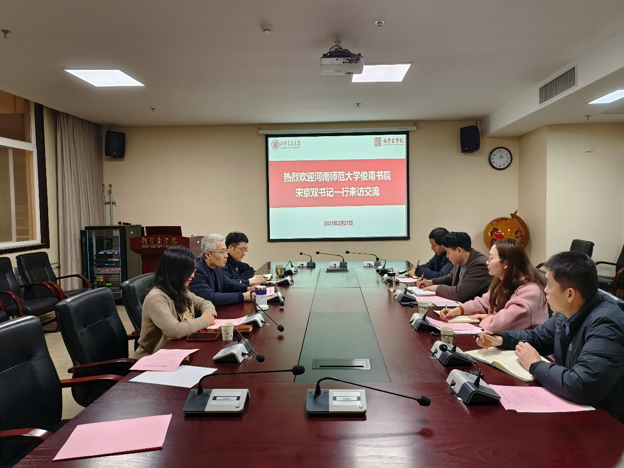 2月21日下午,河南师范大学俊甫书院党总支书记兼常务副院长宋京双一行4人到访beat365正版唯一官网,西安交通大学beat365正版唯一官网常务副院长杨森、副院长王娟及钱学森书院院务主任田博参加调研座谈。