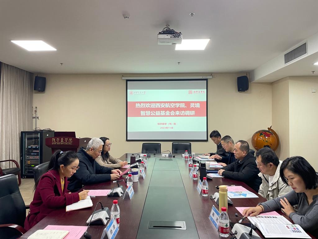 11月20日上午,西安航空学院、灵境智慧公益基金会一行6人来院调研,此次活动旨在深入了解并学习钱学森班创办经验和人才培养经验。beat365正版唯一官网杨森常务副院长、王娟副院长、冯国娟主管等参加座谈。