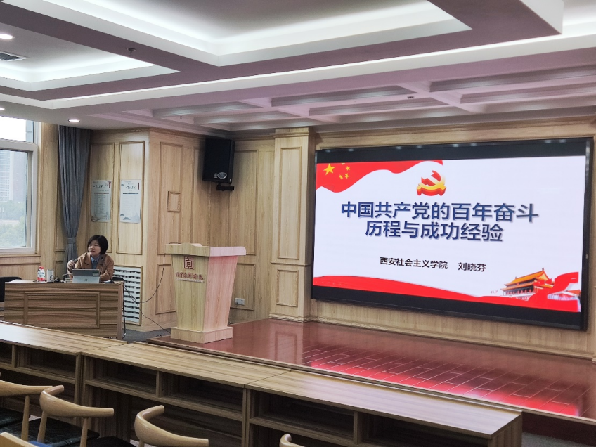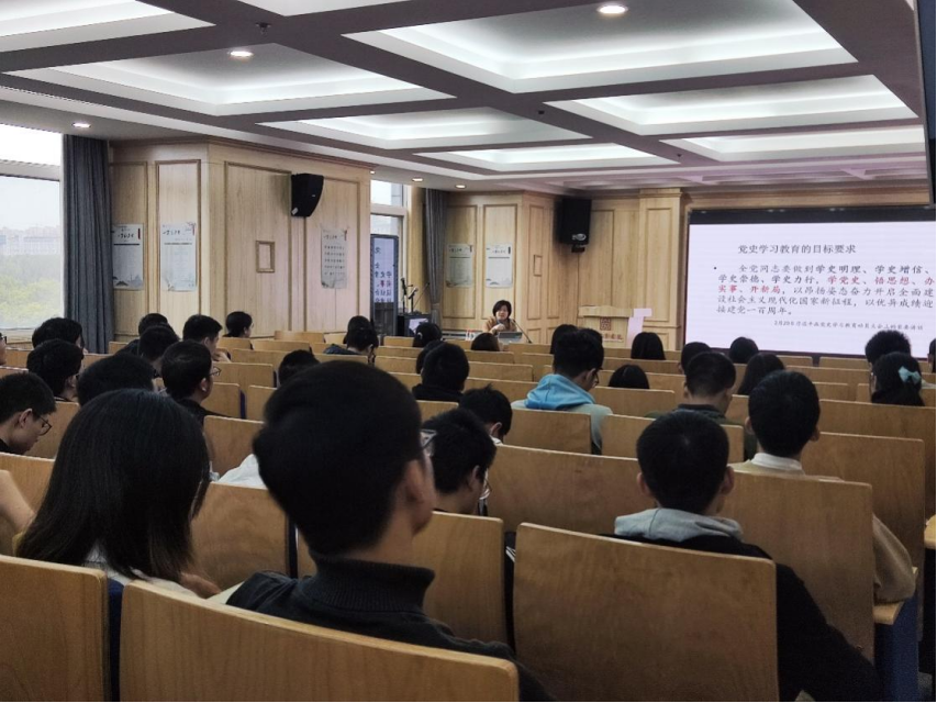 10月14日下午两点半,在化生21级团支书张骞禾同学和林芸菲同学的邀请下,西安市委党校党史党建教研部刘晓芬老师在仲英楼B905报告厅为钱学森书院党总支党员、积极分子以及化生21级的同学们进行了以《中国共产党的百年奋斗历程与成功经验》为题的专题党课讲座,帮助同学们更好的了解中国共产党的历史与初心,进一步培养同学们爱党,爱国的热情。