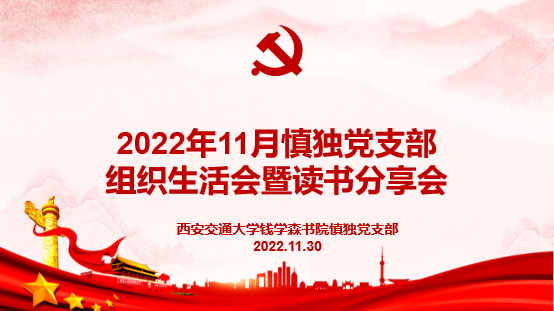为了贯彻落实“四个一百育人行动”,激发支部内热烈的读书学习氛围,增强支部内的交流,2022年11月30日晚,钱学森书院慎独党支部线上召开11月组织生活会暨读书分享会。会议由支部书记高浩田主持,支部党员,部分积极分子参加。