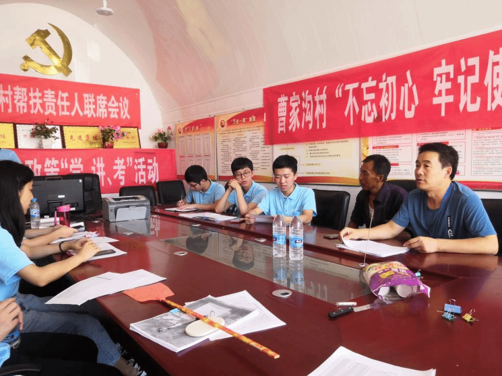 7月28日,西安交通大学“‘贫’水相逢”暑期实践团队8人赴陕西省榆林市子洲县曹家沟村开展精准扶贫调研活动,在曹家沟村村委会受到了第一书记王宁和村支部书记高旺文的热情接待。