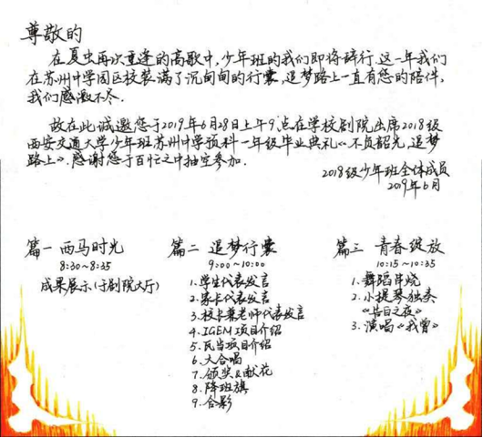 时光匆匆,一年的中学预科生活即将结束,116名少年班学生在三所预科基地,即西安、苏州、天津同时举办结业典礼,为预科一阶段的学习画上一个圆满的句号。