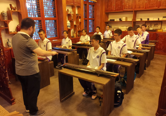 程滨老师是南开预科班学生眼中的“大才子”,据往届学生所说,“他初中时就开始研究古文、格律、音韵等等,也一直自己作诗写文,因为文化积淀太深厚,讲课真的是信手拈来,讲古文枯燥的时候就翻译成白话文,绘声绘色地给我们当故事听,或者干脆把诗唱出来……听程老师的语文课真可谓是在知识的海洋里遨游,精神上的享受。”他主讲的《古琴吟诵》依托南开中学的体验创意中心开设,目的是对中华优秀传统文化教育进行有效渗透,提高少年班学生的人文素养。目前就读南开预科班的安沐阳在每一节古琴课之后,总是迫不及待地期盼再下一节体验课,他评价到,“程老师的古曲简直妙不可言。”