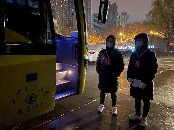 为服务住在兴庆校区的考生前往雁塔校区参加考试,学校组织班车定点接送考生。钱学森书院党总支组织党员志愿者们跟车前往,协助查验考生证件,测温上车,保证跨校区考生准时参加考试。