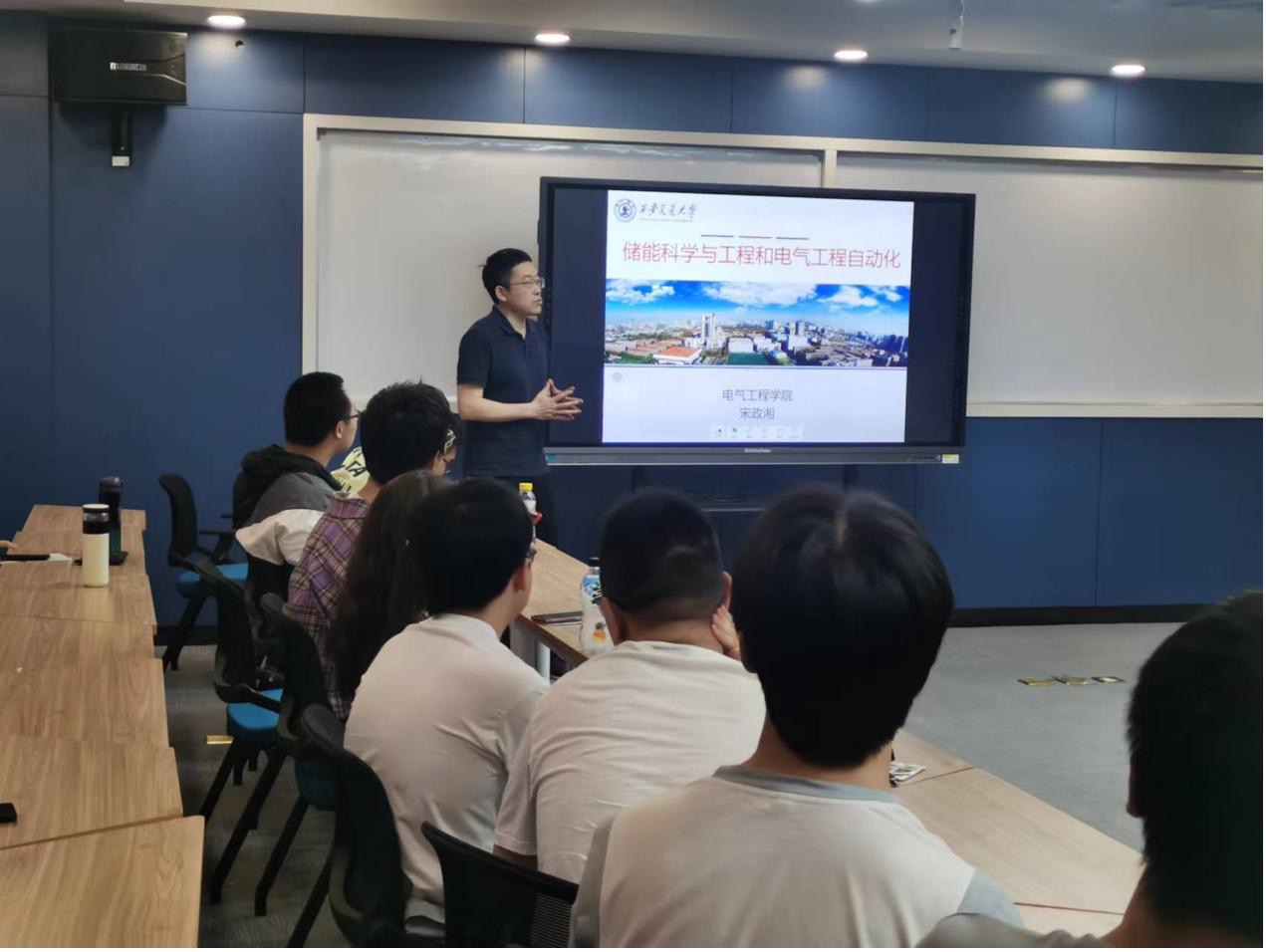 宋政湘教授从储能在电力中的应用出发向同学们介绍了储能系统模块的整体情况和具体研究方向及研究应用。