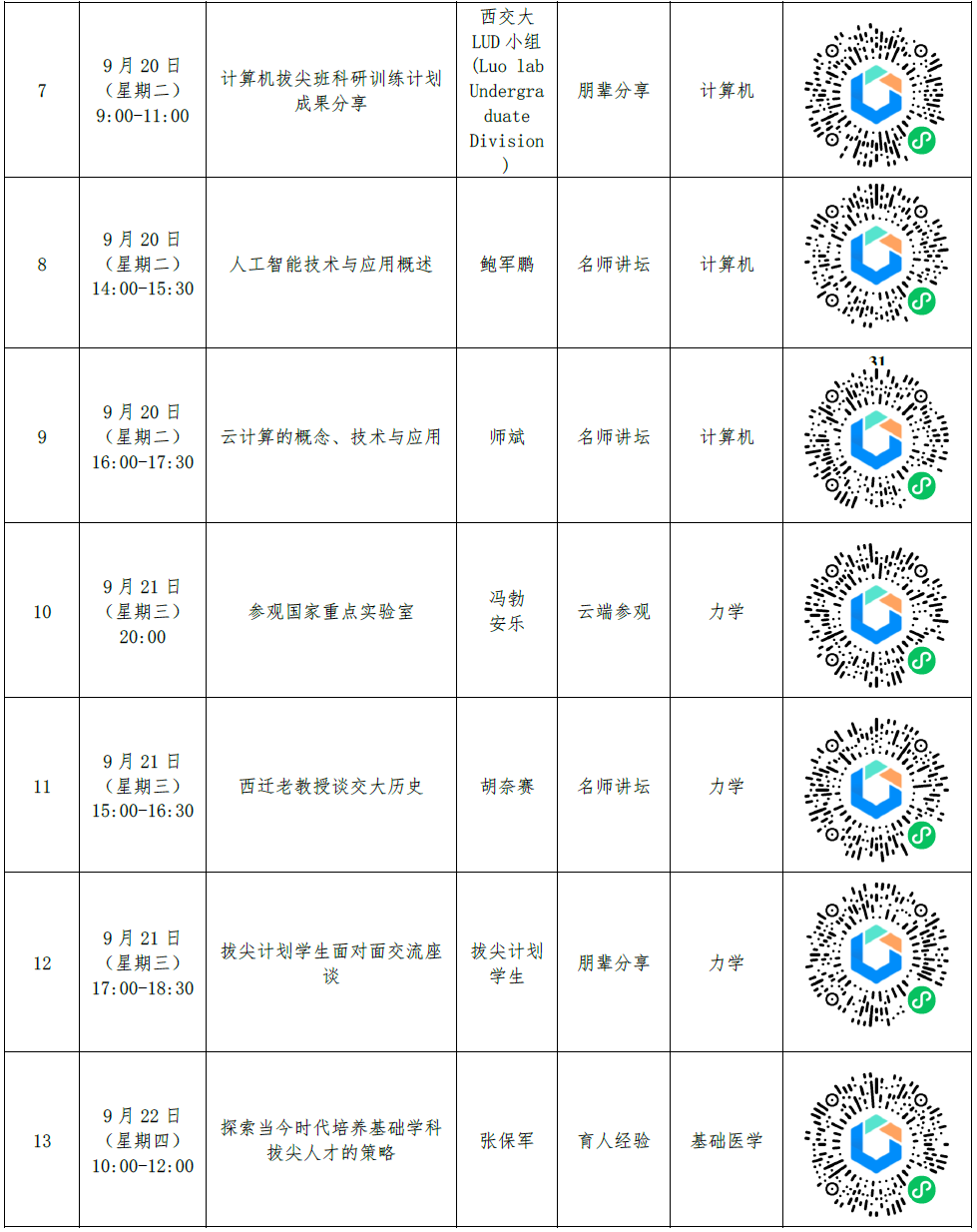 9月18日—9月24日,以“奋楫笃行 求真创新”为主题的教育部“拔尖计划2.0”西安交通大学线上书院主题活动周开启。我校拔尖计划5个学科基地和钱学森学(书)院精心筹备了22场学术之道、名师讲坛、校友分享、朋辈分享、云端参观等内容丰富、形式多样的主题活动。