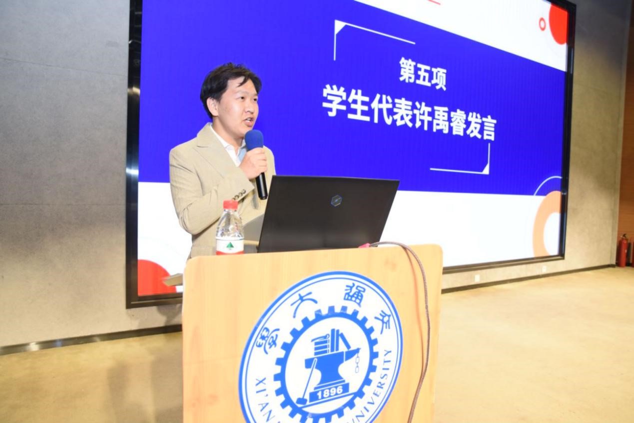 鲜衣怒马少年时,不负韶华行且知,学生代表许禹睿同学发言。讲话中谈到少年班同学蕴含无限的可能性,“思想的自由铸就了我们不唯上、不唯书、只唯实的灵魂;行动的活跃保障了我们想干事、会干事、干成事的能力。我们对于世界的认知,我们行为处事的方式,自由的思想和实干的能力都是在少年班养成的,短短的一段时光让我们体会到,像气体扩散一样自由发展、全面发展是什么样的,这样的机会在全国范围内都是独一无二的,所以我们对于父母、对于学校、对于少年班心怀感恩。”展望未来,期待能够遇见更好的我们,继续保持纯粹的思想,以一种更为实干的态度应对挑战,在一个更高的维度一步一步地将我们心中的少年送上更高的舞台。