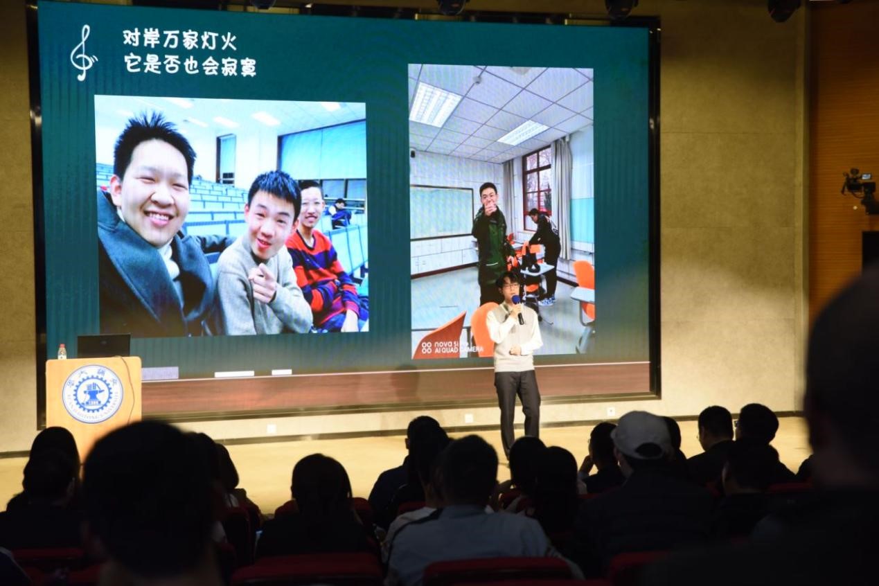 周睿哲同学带来的表演《擦肩而过的春天》,引发全场老师以及同学们一致共鸣,致敬少年班美好的青春。集体的依靠、活动的喜悦、背后的调侃等背景中的一张张图正是那匆匆流走却无比宝贵的青春时光,让我们在歌声中为共同的梦想再次出发。