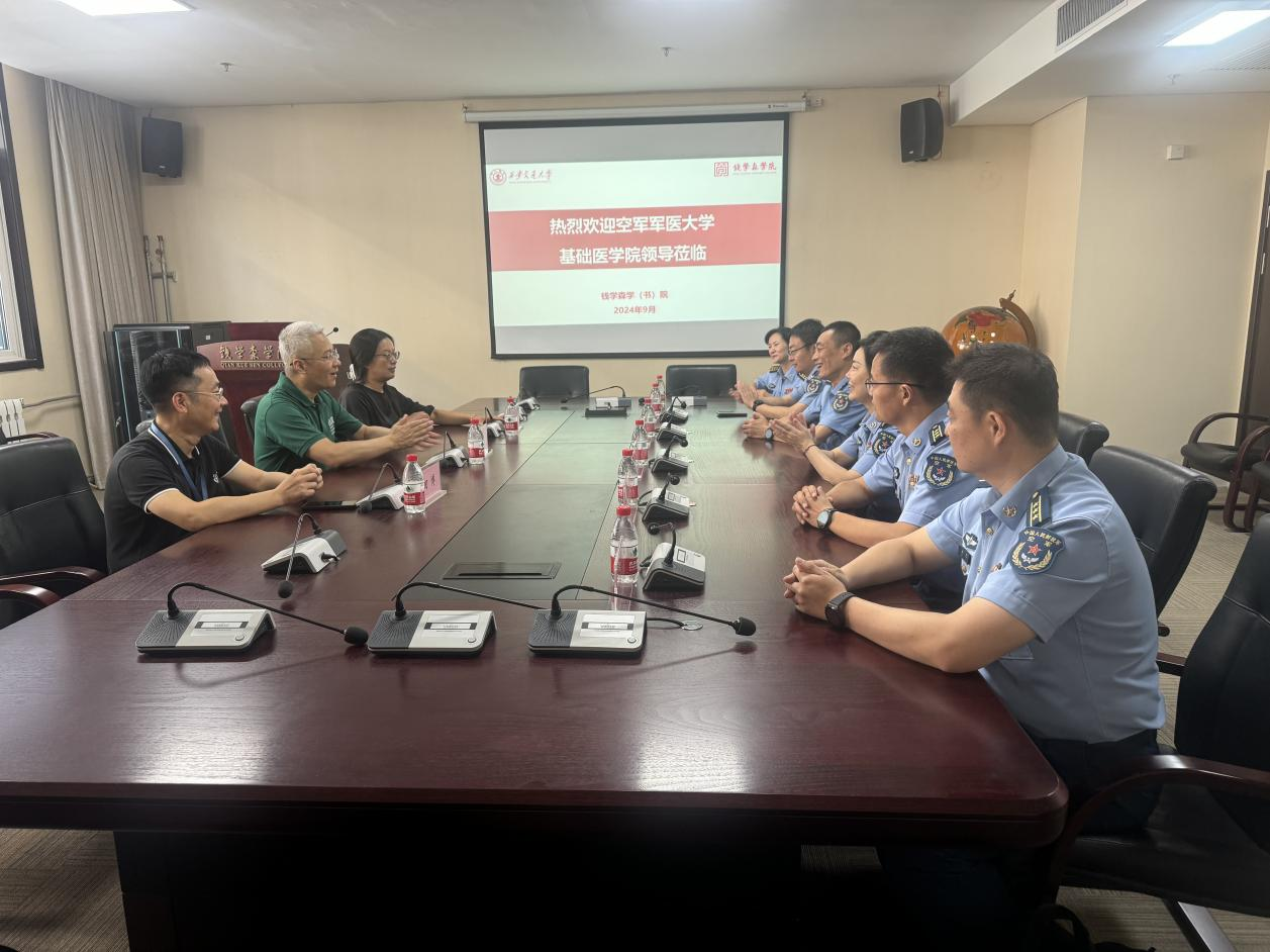 9月13日上午,空军军医大学基础医学院院长张铭一行来院座谈,双方就军地拔尖人才联合培养展开深度交流,beat365正版唯一官网常务副院长杨森、副院长王娟,钱学森书院院务主任田博参加座谈。会议由杨森主持。
