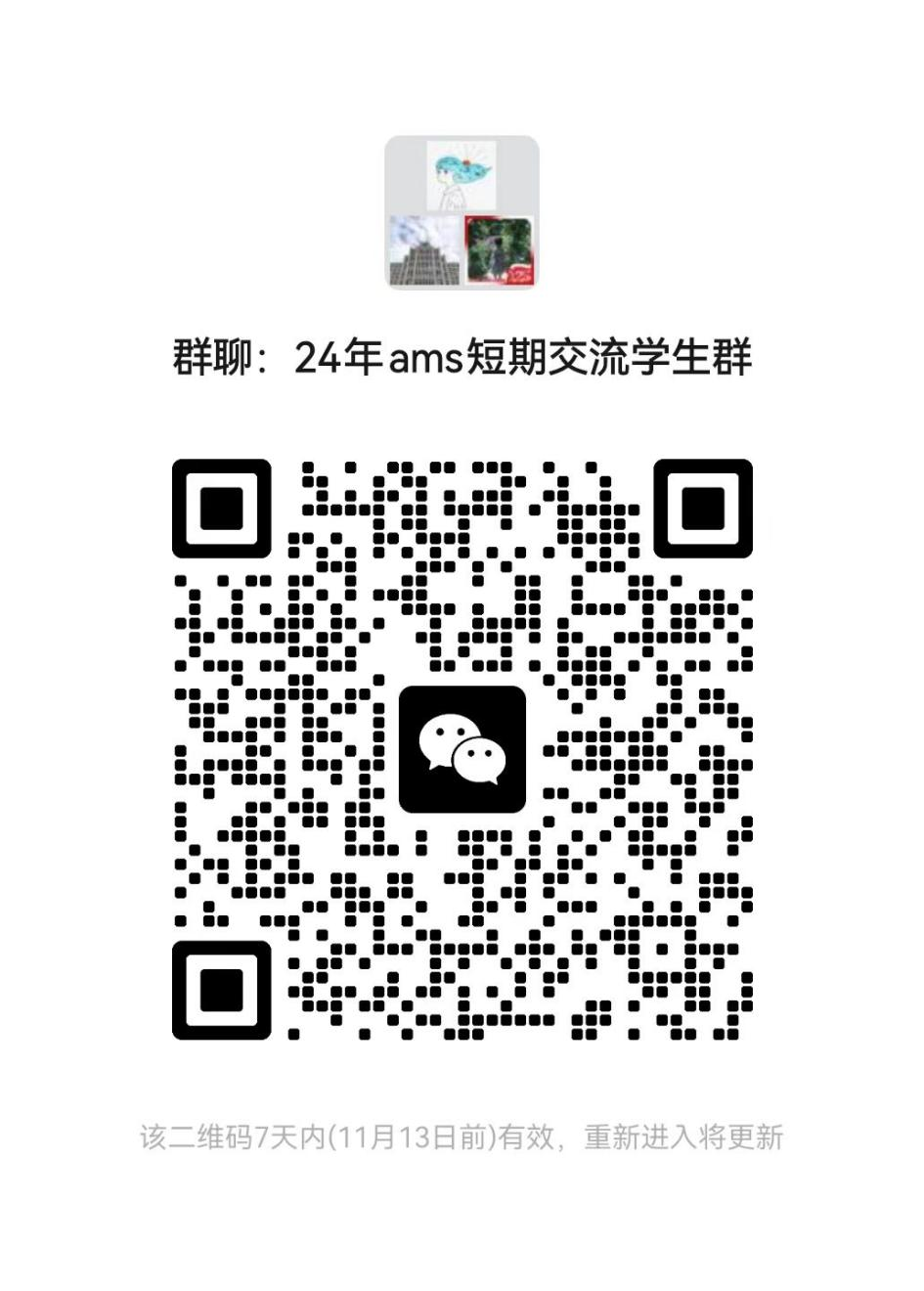 请各位同学加入本次短期交流微信群(群二维码如下),后续具体安排将在群内通知。