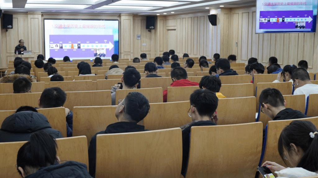 叶老师从交通大学的历史开始讲起,从1896年盛宣怀建立南洋公学,到1906—1921年间南洋公学的不断发展,再到民国时期“交通大学”校名的正式确立。此后历经十几年战乱,到1945年抗战胜利后师生陆续返回上海复校,再到1956年交通大学决定内迁西安,才真正意义上地成立了西安交通大学。之后西安交通大学在历届校长的领导下,不断发展壮大为今天的西安交通大学。