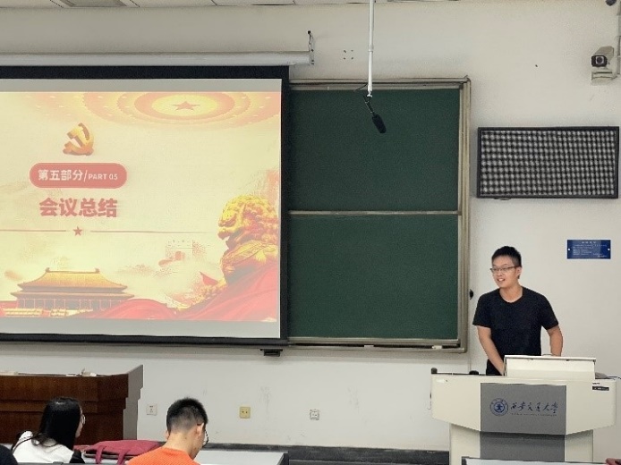 会议最后,党支部书记李浩天同志对会议进行了总结。他指出目前毕业季将至,支委会内存在一定的懈怠的问题,整体工作效率偏低。基于此,他对即将毕业的同志们提出了应当提高自觉意识、主动积极完成分内工作、提高支部整体工作效率的要求。