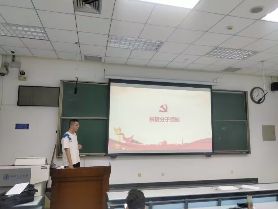 会议第一项,高浩田同志向新一批入党积极分子介绍慎独党支部基本情况。他介绍了党支部的成员组成、支部委员以及组织生活会的基本情况并强调:组织生活会可以让大家加强和党组织之间的联系,积极向党组织靠拢,同时也是大家学习党的思想理论、方针政策的有效途径。他还从“申请入党”、“入党积极分子的确定和培养教育”、“发展对象的确定和考察”等方面向积极分子介绍了入党流程。他指出,支部在以往入党积极分子考察与培养工作中存在不足与欠缺,在本学期支部将进一步明确积极分子考核标准,在积极分子培养考察方面更加规范。