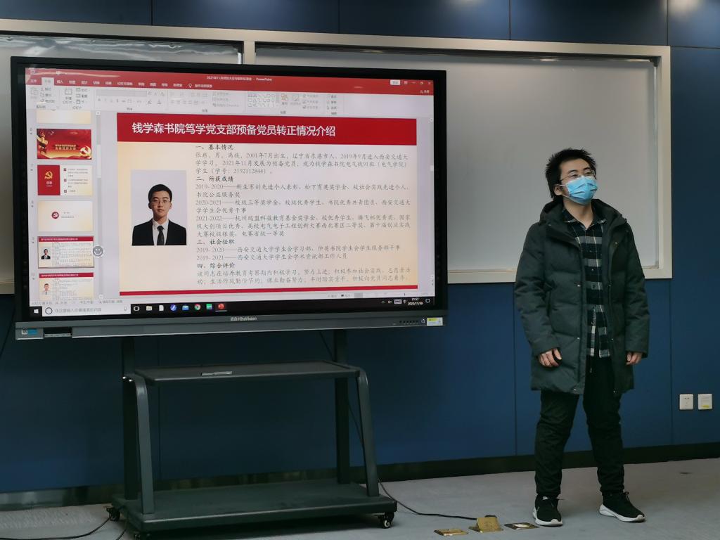 2022年11月30日晚,钱学森书院笃学党支部在仲英楼B917召开党员大会,支部书记魏成骁主持会议,支部党员参加会议。