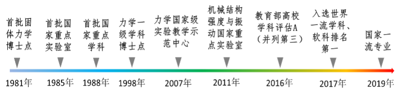 力学拔尖学生培养基地于2020年入选“国家基础学科拔尖学生培养计划2.0”,工程力学专业所属力学学科,本学科第四轮学科评估为“A”,入选“双一流”学科。本专业创办于1957年,1962年经教育部批准成立振动测试基地,首批博士点(1981)、首批国家重点实验室(1985)、首批国家重点学科(1988、2001、2006),1989年设力学博士后流动站,1998 年力学一级学科博士点。2007 年建成国家级力学实验教学示范中心,省部级重点实验室5 个。创办4 个学术期刊。本专业为“教育部第一批特色专业”和2019年第一批“国家级一流本科专业”建设点。2019年获首批国家一流专业。以“集一流队伍、建一流基地、创一流环境、出一流成果、育一流人才”为定位,形成了“基础厚、重实践、能力强、适应广”的人才培养特色与传统。