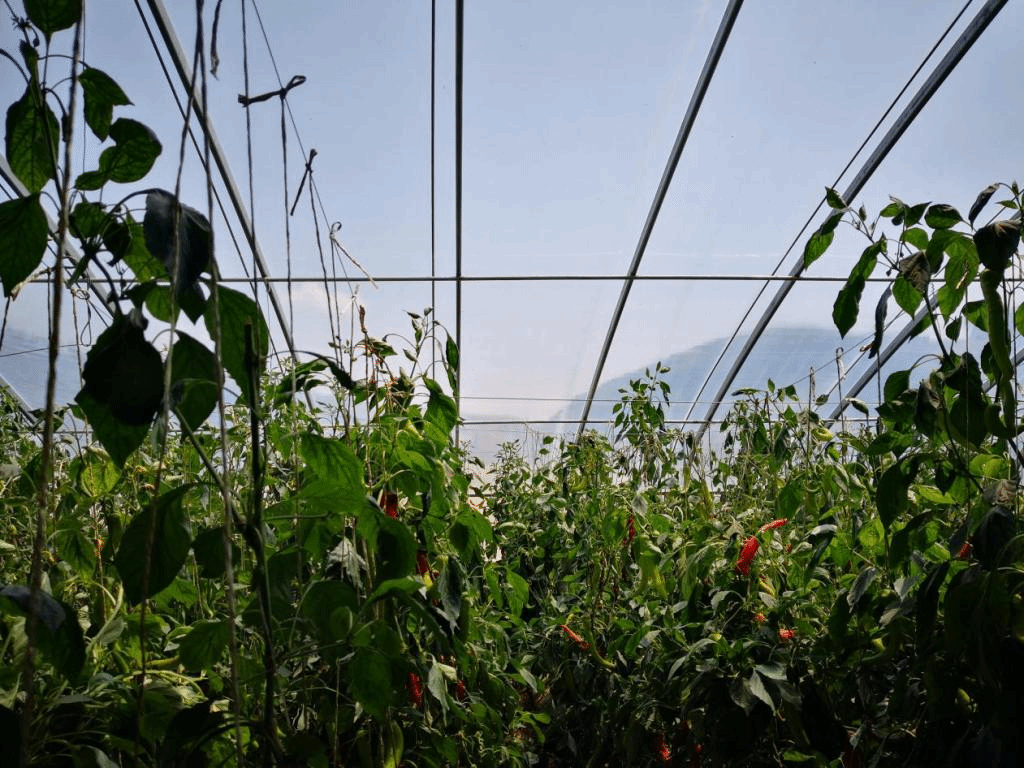 当天下午,王书记带领实践团队参观了当地部分产业扶贫项目。队员们首先来到蔬菜大棚基地,蔬菜大棚中种植反季节蔬菜,具有很高的经济价值。队员们帮助农户采摘蔬菜,得到了农户们的感谢。王书记指出,该项目属于村集体经济,国家投资建设,贫困户入股享受分红,为贫困户的生活带来了巨大的改善。随后,实践团队参观了当地光伏发电厂。