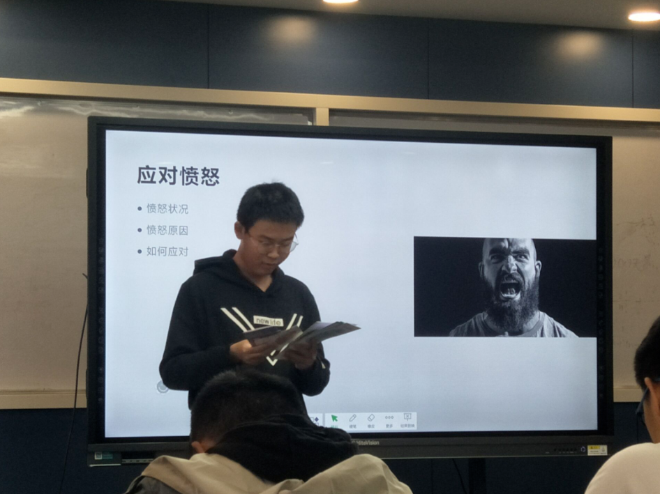 在2020年10月24日,计试001在仲英楼B917举行了一次心理班会。在这次心理班会中,心理委员曹嘉伟从摆脱抑郁,应对愤怒,关注人际,直面失恋,时间管理等这些大学生容易出现并值得关注的话题来进行讲解。在会上,同学们积极发言,心理委员认真讲解,气氛良好,心理班会取得了良好的结果。