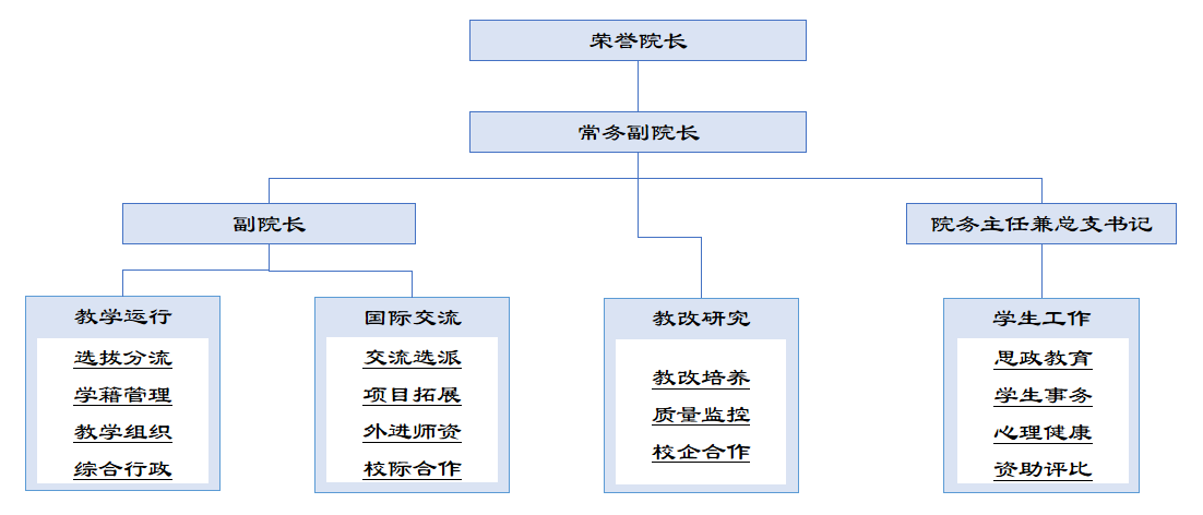 | 副院长 | 王娟 | 1)分管综合办公室工作 2)分管教学运行办公室各项工作 3)协助管理教改研究办公室工作 |